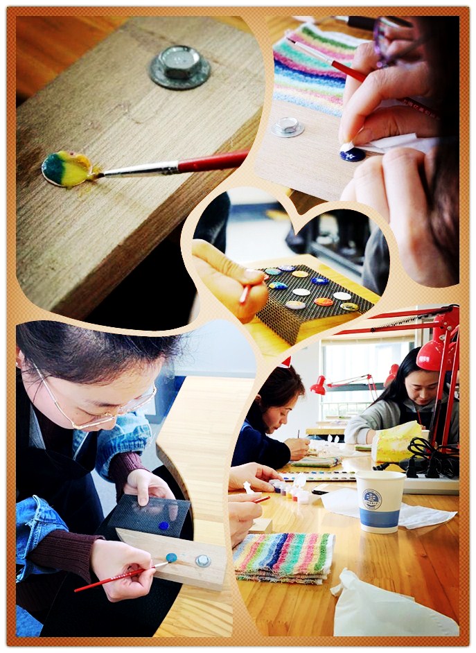 美不胜收的珐琅吊坠,在具有工匠精神的女教师们精描细凿下,一个接一个地出炉了,画面简直是“乱花渐欲迷人眼,浅草才能没马蹄”。老师们欣喜地佩戴起自己的首次珐琅作品,在这个美丽的春天里,继续着自己充满希望的事业。