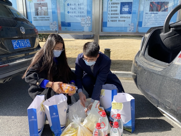 徐悲鸿艺术学院辅导员张婕老师准备水果慰问62号楼隔离区的学生