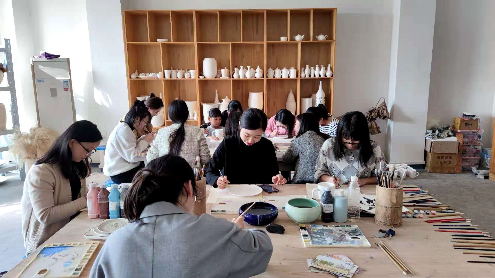 中国画艺术与陶瓷艺术有着不解之缘。它们在审美情趣与意境乃表现技法与题材选择上都有诸多的相似点。讲座交流之后,李老师把国画技法运用到陶瓷艺术上,将海大新老校园的美丽风景绘在瓷盘上,引得大家纷纷点赞并跃跃欲试。在李老师的指导下女教职工们创作完成了属于自己的瓷器绘画作品。此次活动通过中国画艺术与陶瓷艺术的完美结合让我院女教职工们一起学“四史”、忆校史、明初心,不仅提升了书画水平,增强了审美意识,而且提升了知校、爱校的情感,在弘扬中华优秀传统文化的实践中增强了实现中华民族伟大复兴中国梦的信心。